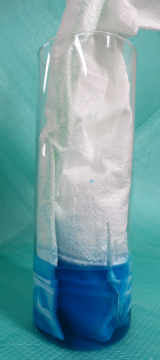 製品Cは吸水速度が極めて遅いので、この時点でSAPを手で揉んで水中に放置。