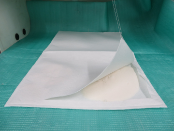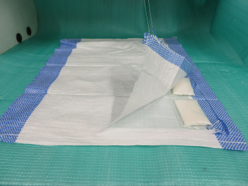 シート化して、ポリ・プロピレン(PP)不織布製袋に封入